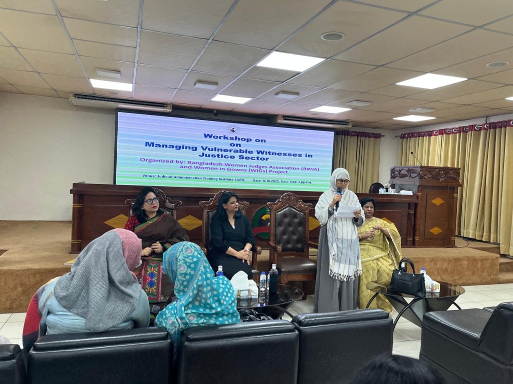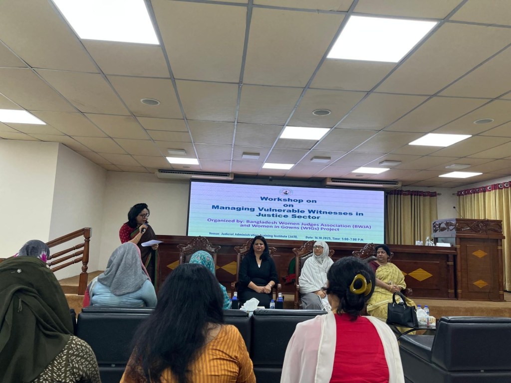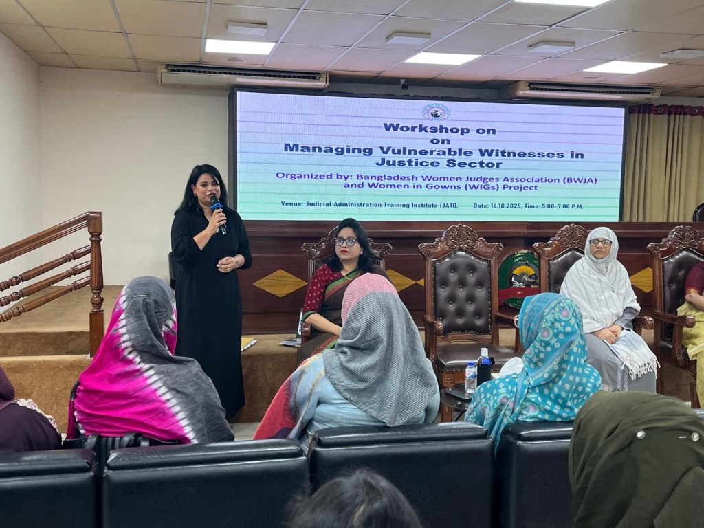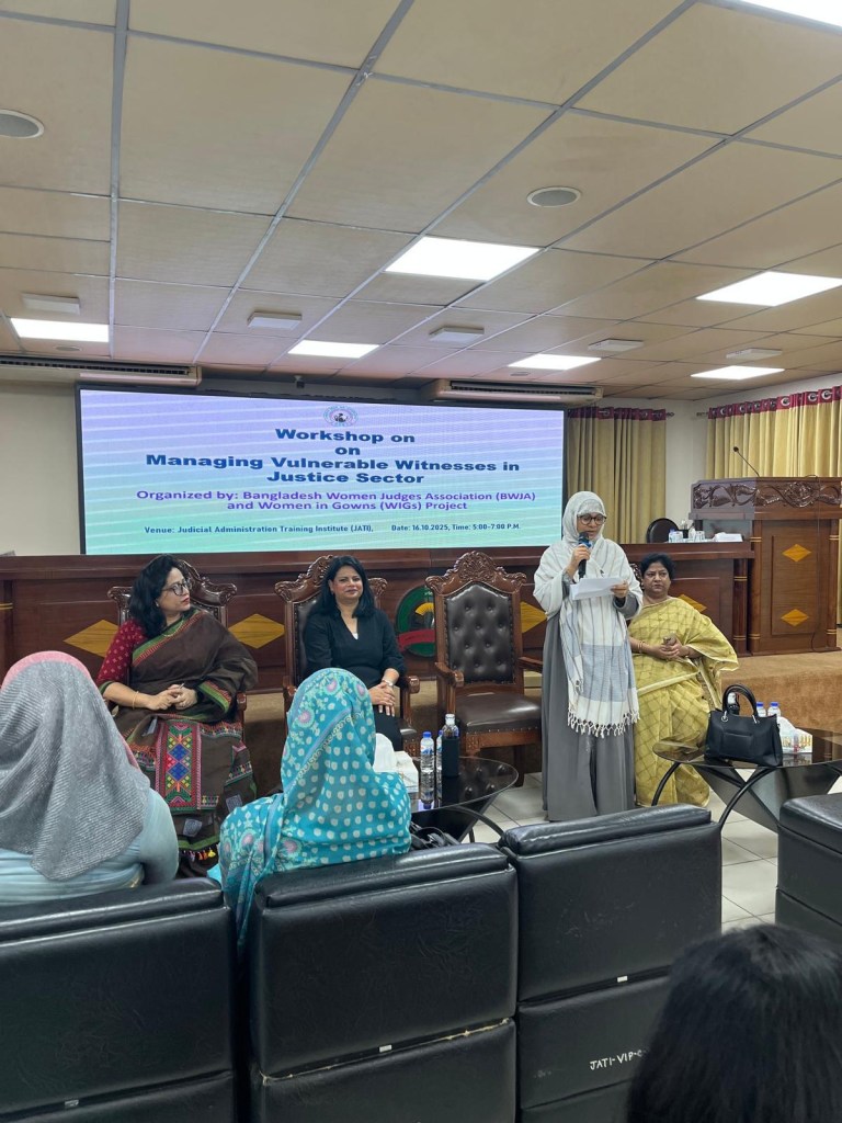 On 16 October 2025, Sabina facilitated a shared learning session hosted by the Bangladesh Women Judges Association (BWJA). At this event, Sabina facilitated group discussions on how to manage vulnerable witnesses in the justice sector. At the end of the session, the judges collectively agreed that there needs to be more opportunities to share learning on issues impacting vulnerable witnesses to improve access to justice. Sabina has been invited to return and deliver further shared learning sessions for the BWJA.