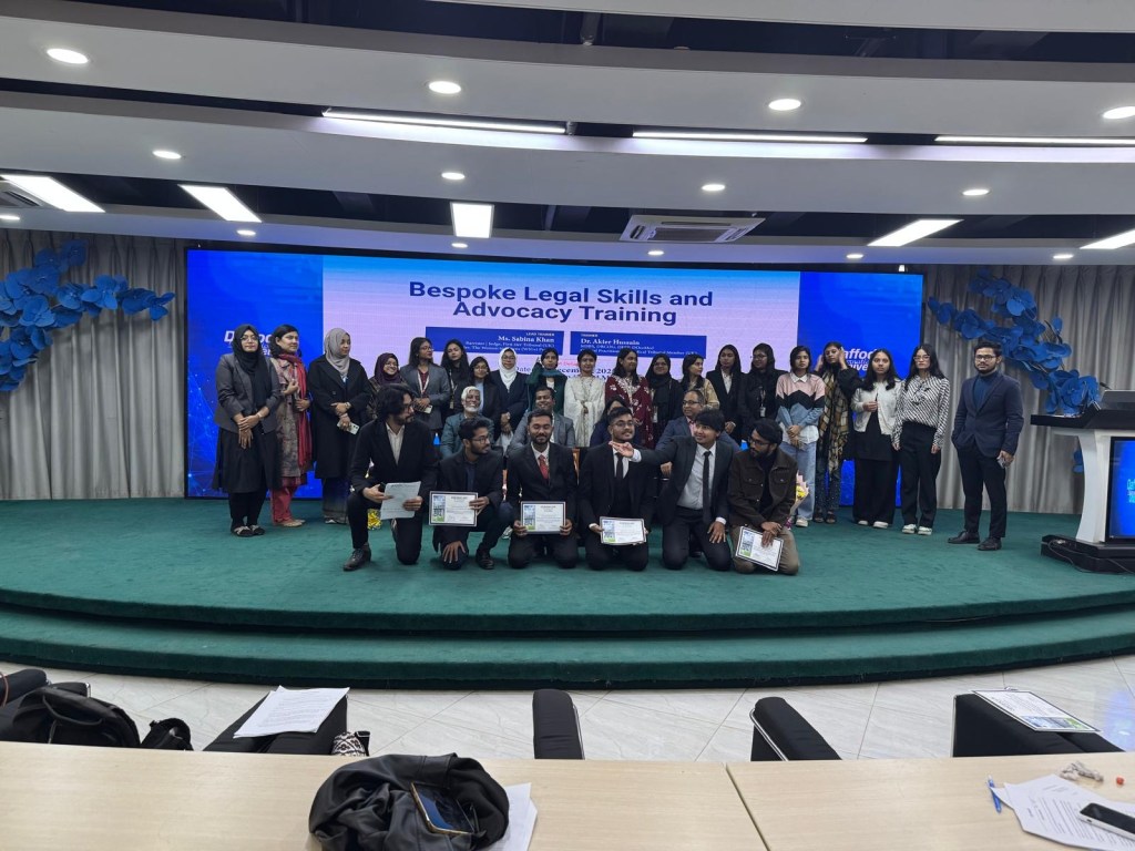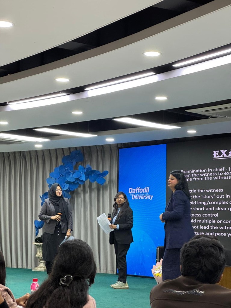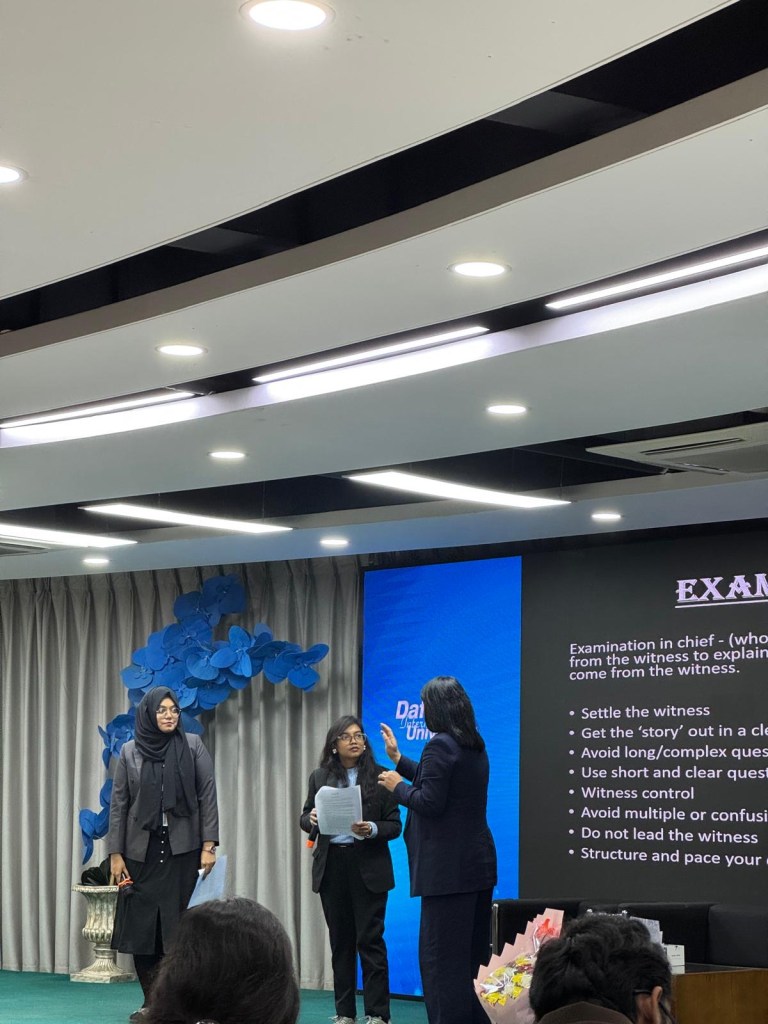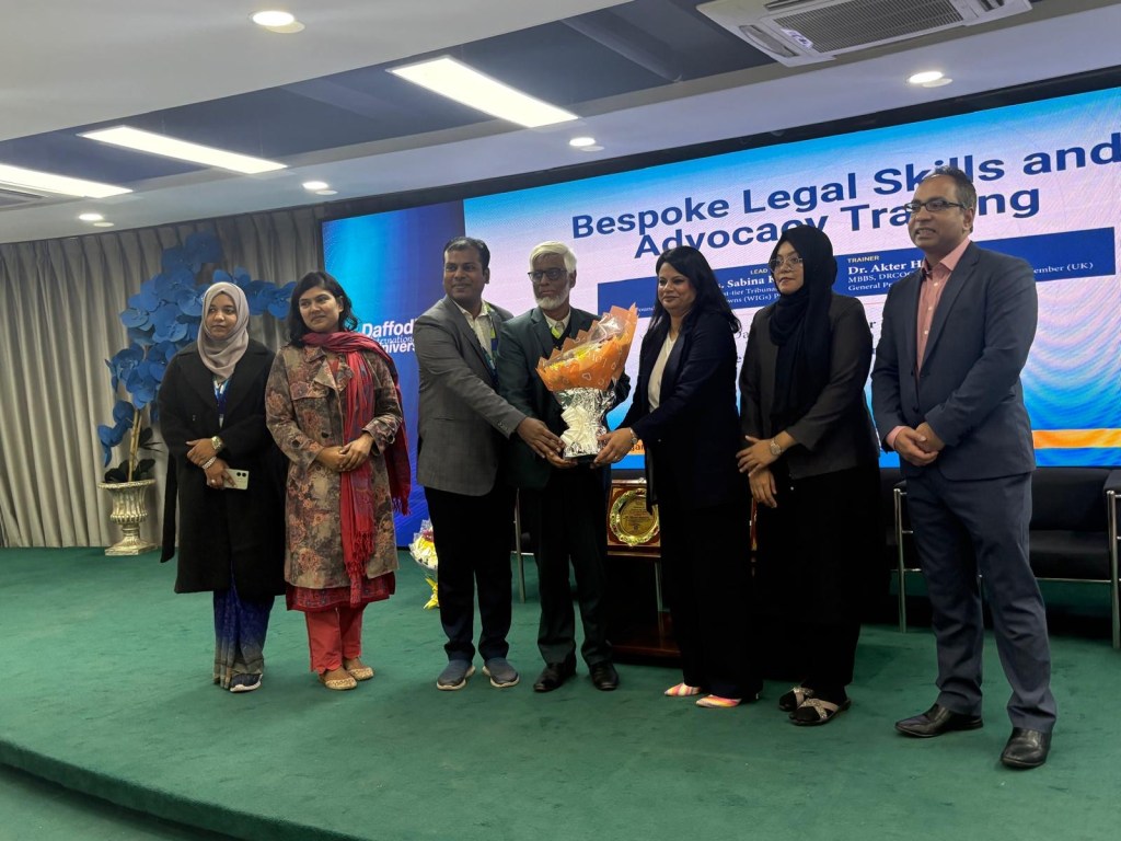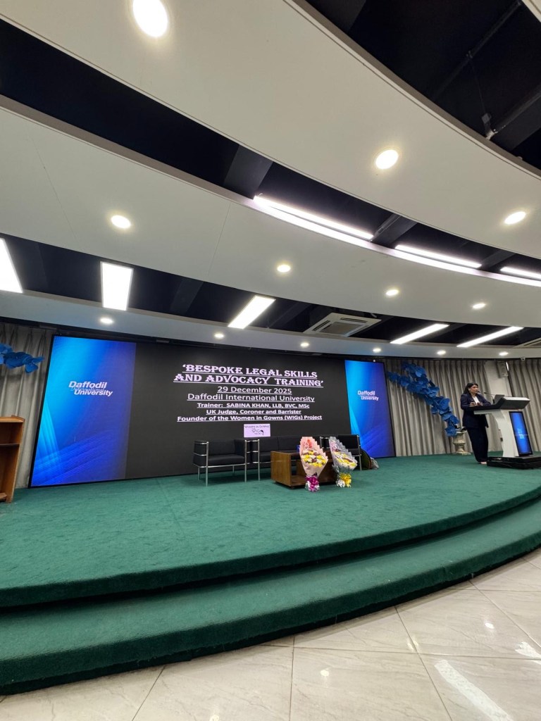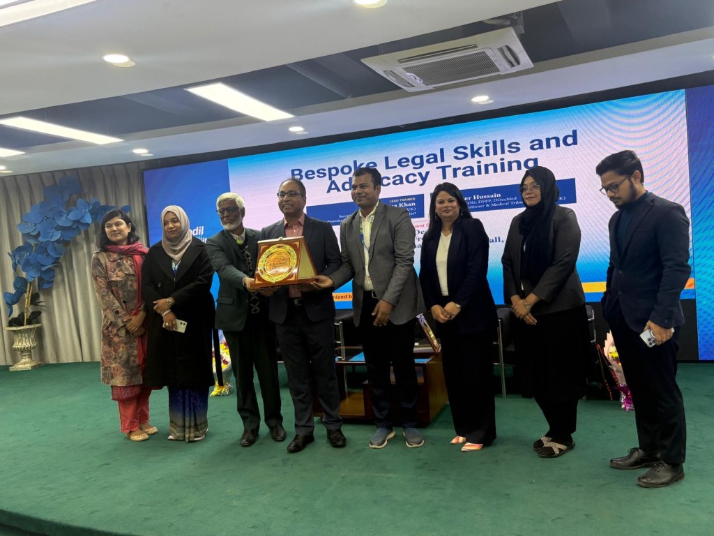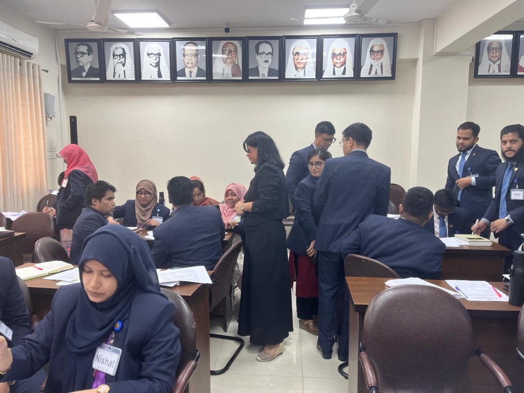 On 29 December 2025, Sabina delivered bespoke advocacy and legal skills training to law students at Daffodil International University, Bangladesh. The students received training on case analysis, conference skills and the art of advocacy (examination-in-chief, cross-examination and closing submissions). The academic staff enjoyed acting out the roles of the witnesses in the case scenario while the students questioned the credibility of the witnesses with much enthusiasm. Dr Akter Hussain, General Practitioner in the UK also delivered an important session on wellbeing for students while working in a challenging profession. The training session was enjoyed by all and Sabina and her team have been requested to return to Daffodil International University to deliver more thought provoking and interactive training.