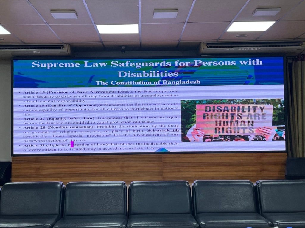 On 15 October 2025, Sabina delivered training to 60 newly appointed judges at the Judicial Administration Training institute (JATI), Bangladesh. The training focused on ‘Managing Court Users with Disabilities’.